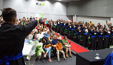Luiz Carlos Moreno da Silva Júnior, formando do curso de licenciatura em Química, realizando o solene juramento. Foto: Cristiano Lira
