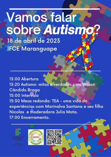 Em alusão às reflexões propostas no mês de abril, a partir do "Dia Mundial de Conscientização sobre o Autismo", celebrado no dia 02, o campus Maranguape realizará uma programação para tratar do tema.