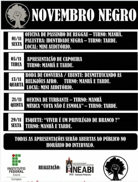 Eventos são uma iniciativa dos Núcleos de Estudos Afro-Brasileiros e Indígenas (Neabis)
