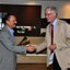 Pró-reitor de Extensão, Gutenberg Albuquerque, recebe os cumprimentos do vice reitor do Higher Education Management, Werner, ao final dos trabalhos