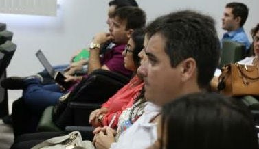 Servidores passam por treinamento no auditório da Reitoria