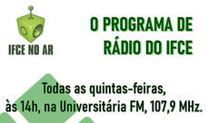 O IFCE No Ar está no ar desde 2013 e é uma das estratégias de comunicação mais longevas e bem sucedidas do Departamento de Comunicação Social do IFCE. Feito pelos comunicadores do IFCE, sob coordenação e produção da jornalista Cláudia Monteiro, revisão e apresentação de Priscila Luz, e edição final dos técnicos em audiovisual Eugênio Pacelli e Filiphe Sá. O podcast vai ao ar na Rádio Universitária FM 107,9, às 14:00, e também pode ser ouvido pela internet aqui, no Anchor e Spotify.