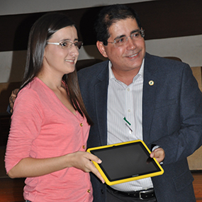 Professor Virgílio ao entregar tablets aos servidores docentes (foto: Bruno Leonardo)