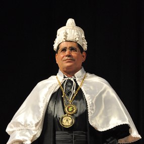 Durante a solenidade, Virgílio Araripe recebeu as vestes talares reitorais (foto: Bruno Leonardo)
