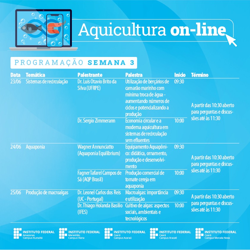 Seminário Aquicultura Online abre inscrições gratuitas