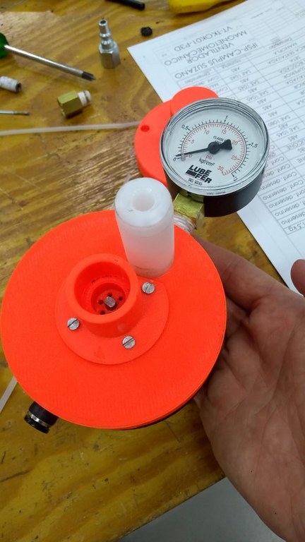 Respirador mecânico de baixo custo em desenvolvimento (foto: Alexandre Maniçoba/Laboratório de Fotônica)