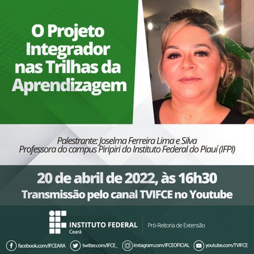 Gravação da palestra da Profa. Joselma Ferreira Lima e Silva - Gravação da Quarta Trilha de Aprendizagem para a Curricularização da Extensão no IFCE: O Projeto Integrador nas Trilhas da Aprendizagem.