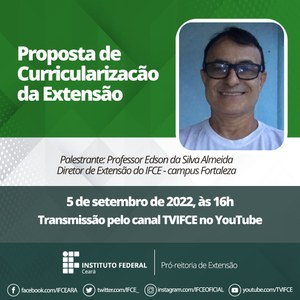 Gravação da palestra do Prof. Edson da Silva Almeida - Gravação da Sétima Trilha de Aprendizagem para a Curricularização da Extensão no IFCE: Proposta de Curricularização da Extensão.