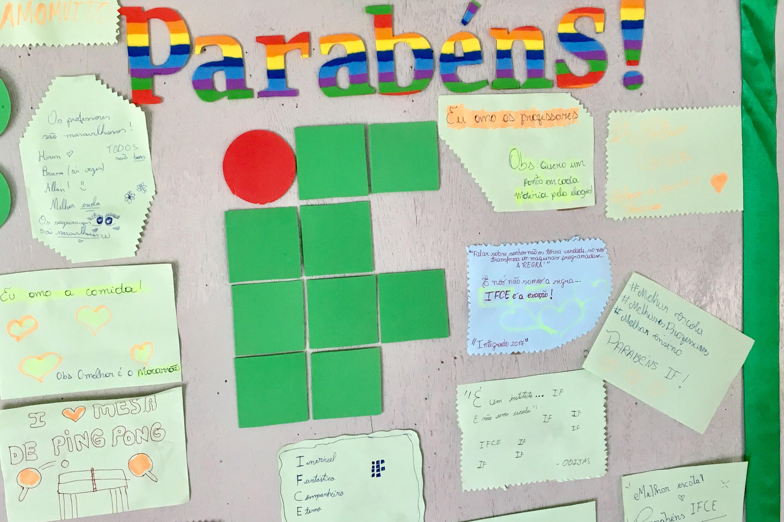 Estudantes dos cursos integrados prepararam um mural com produções textuais.