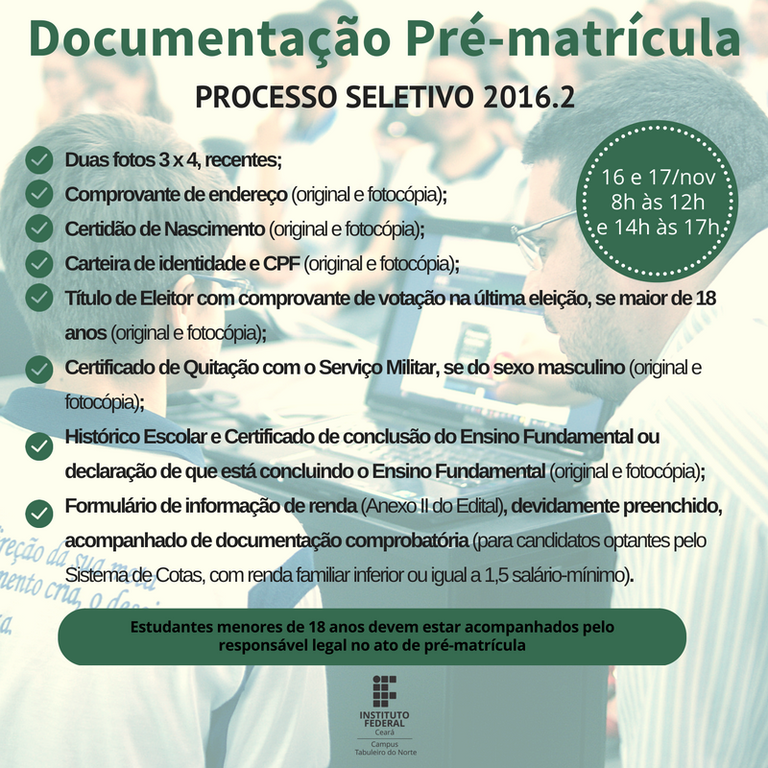 Estudantes aprovados devem efetuar a pré-matrícula nos dias 16 e 17 de novembro, no campus de Tabuleiro do Norte