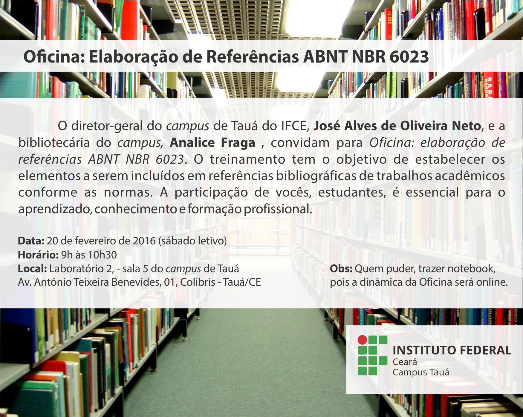 Oficina Elaboração de Referências Bibliográficas no campus de Tauá