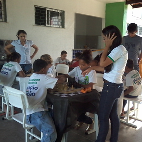 A atividade previa a prática do raciocínio lógico infanto-juvenil e teve como instrumento o xadrez
