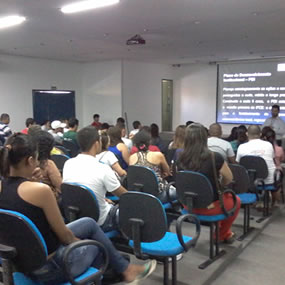 Alunos novatos e veteranos são acolhidos no auditório do campus de Tauá