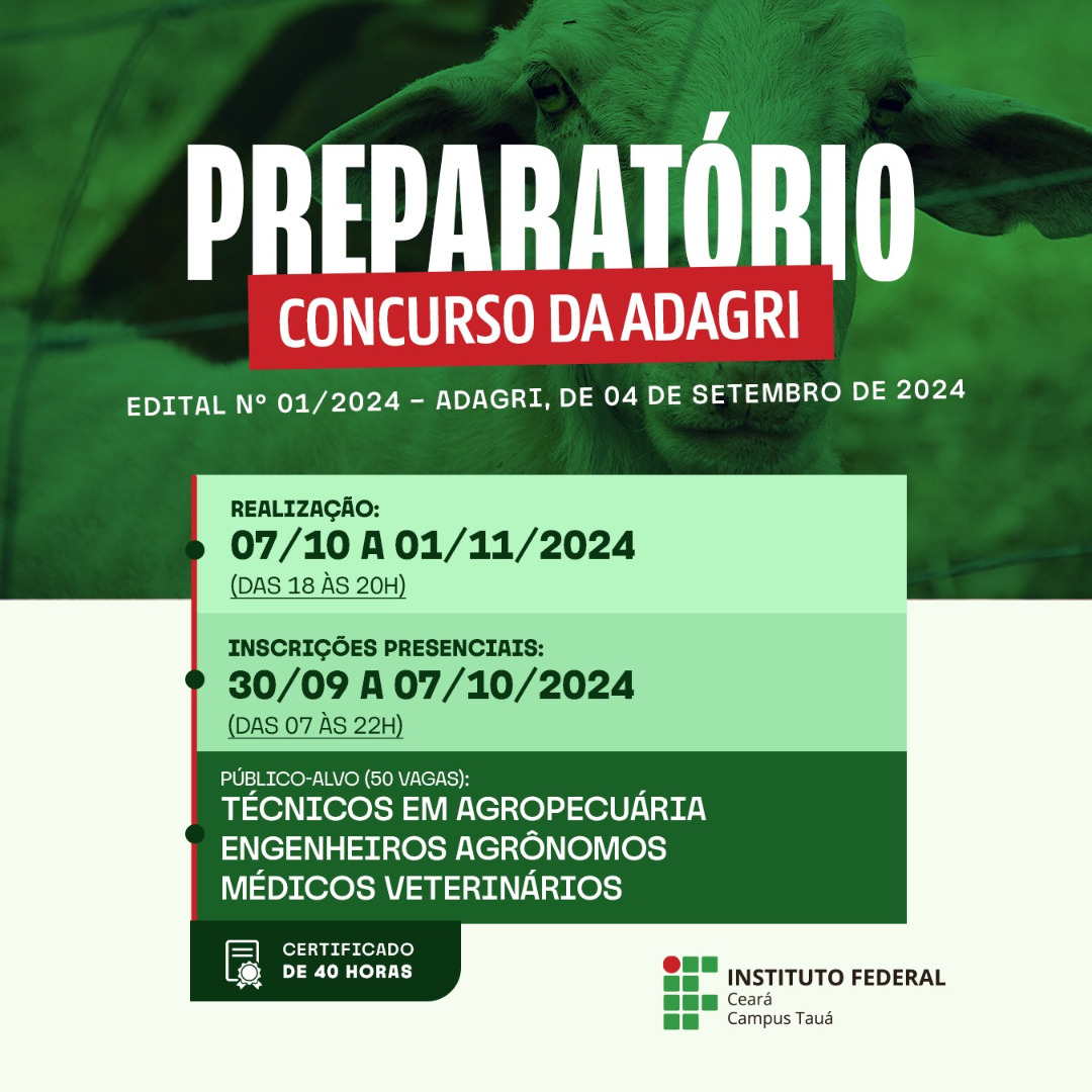 IFCE campus Tauá abre inscrições para o minicurso preparatório para o concurso da Adagri 2024