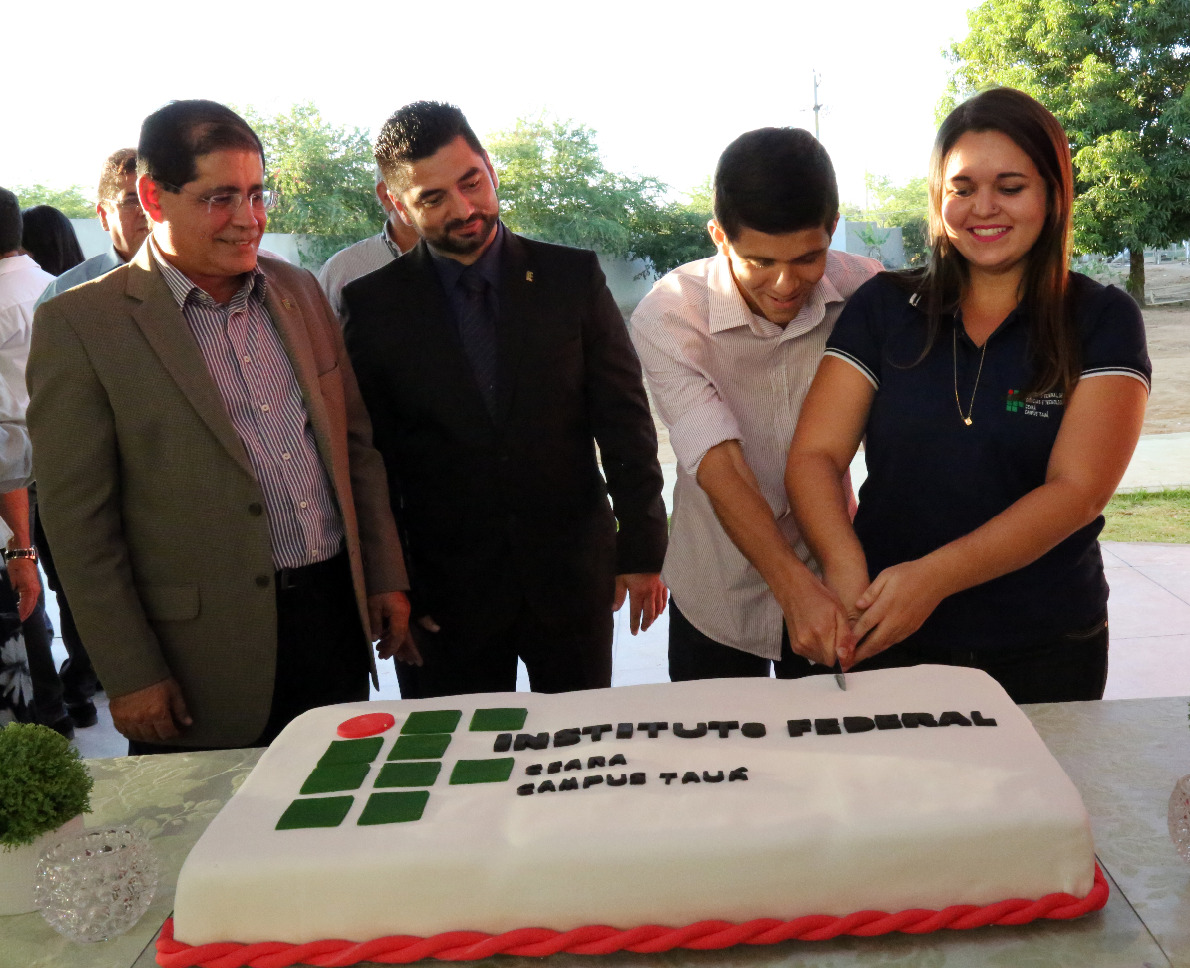 Alunos do campus de Tauá cortam o bolo para encerrar o evento