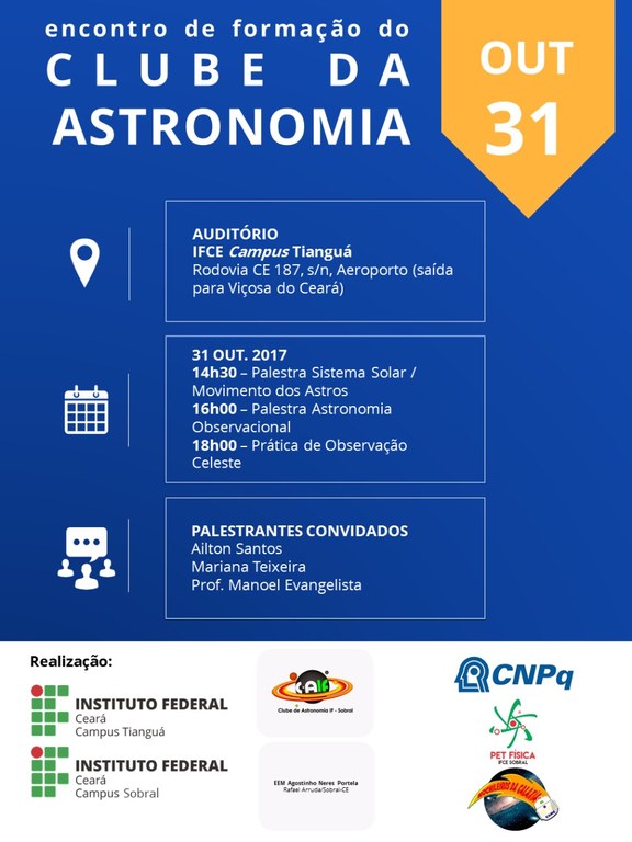 IFCE Tianguá convida para I Encontro de Formação do Clube da Astronomia