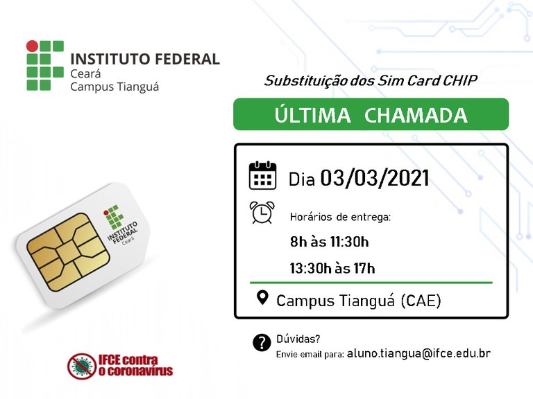 Estudantes deverão receber novo chip no dia 3 de março. Última chamada.