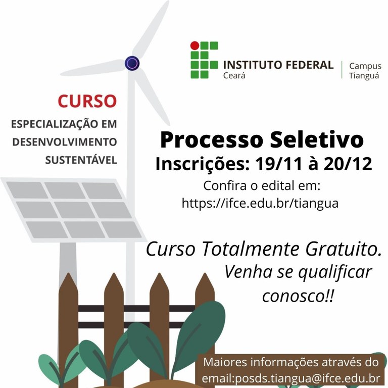 Especialização em Desenvolvimento Sustentável divulga resultado final