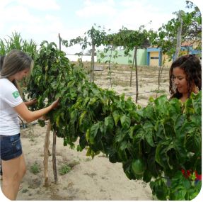 Alunos em projeto de maracujazeiro