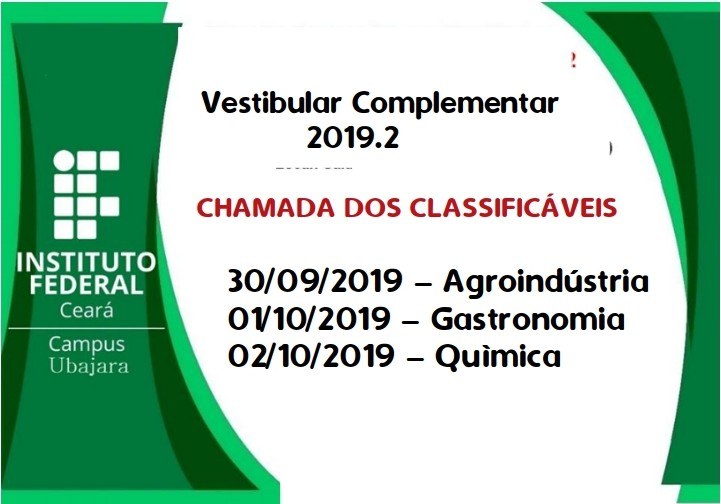 Vestibular complementar 2019.2: Chamada dos classificáveis