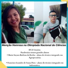Na tarde do dia 25 de fevereiro de 2021 foi divulgado o resultado da 2ª fase da Olimpíada Nacional de Ciências - ONC e o IFCE - campus Umirim obteve destaque através de dois alunos do campus que obtiveram Menção Honrosa na ONC: