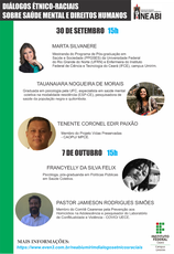 O Núcleo de Estudos Afro-brasileiros e Indígenas de Umirim, convida a toda comunidade acadêmica de Umirim para participar do evento online: "Diálogos Étnico-raciais sobre Saúde Mental e Direitos Humanos" que será realizado em dois momentos: Dia 30 de setembro e Dia 07 de outubro, sempre às 15h.